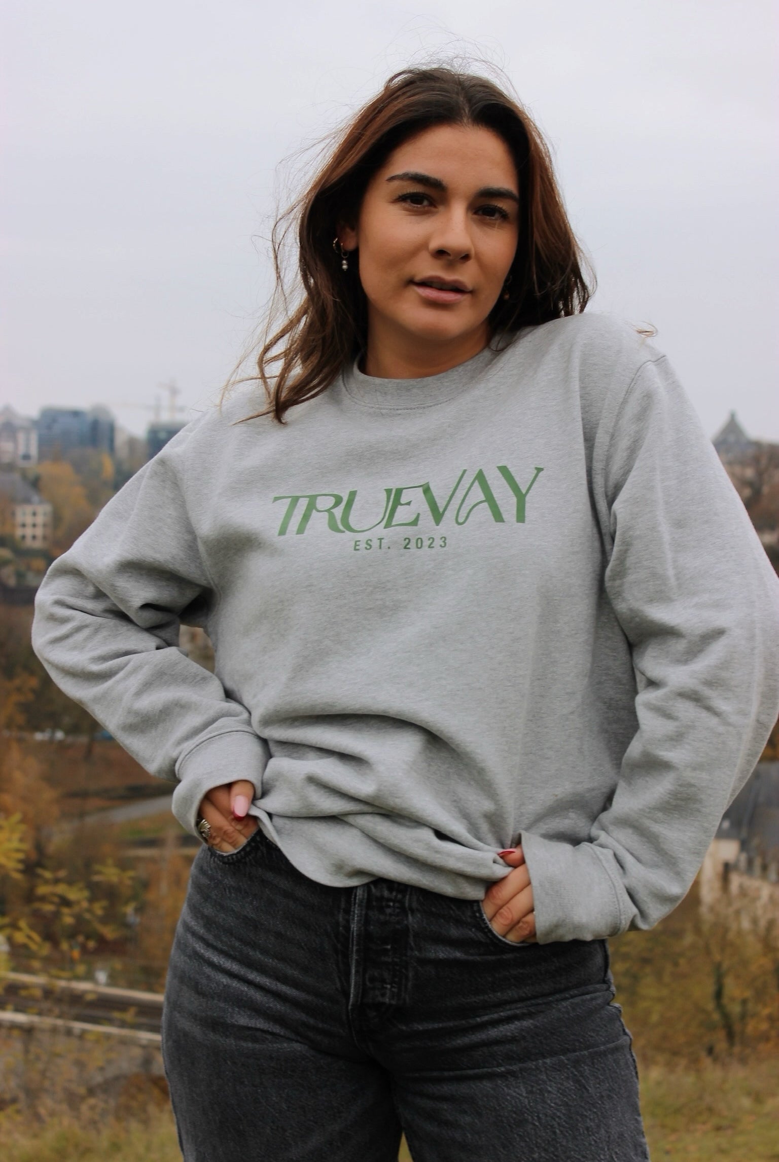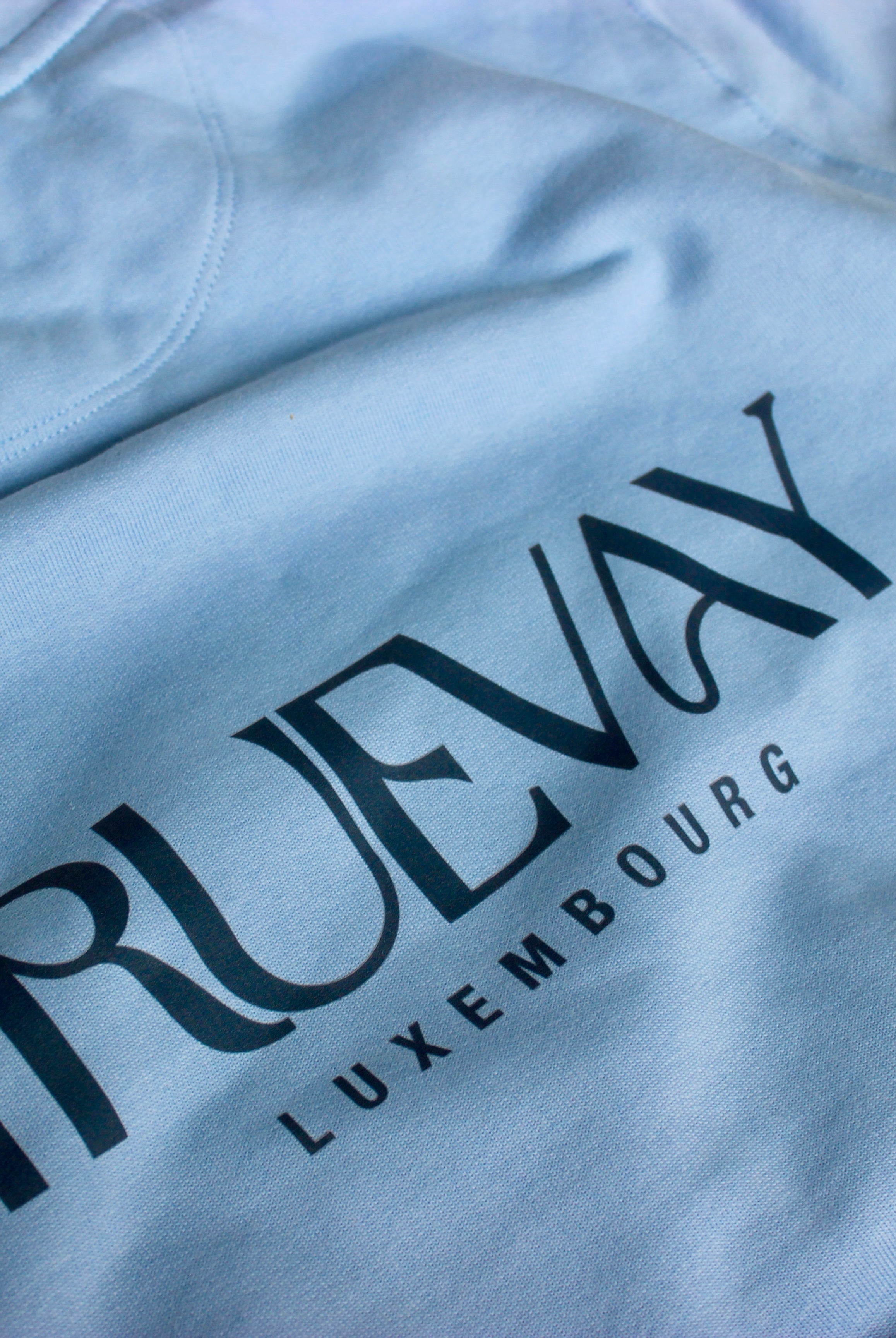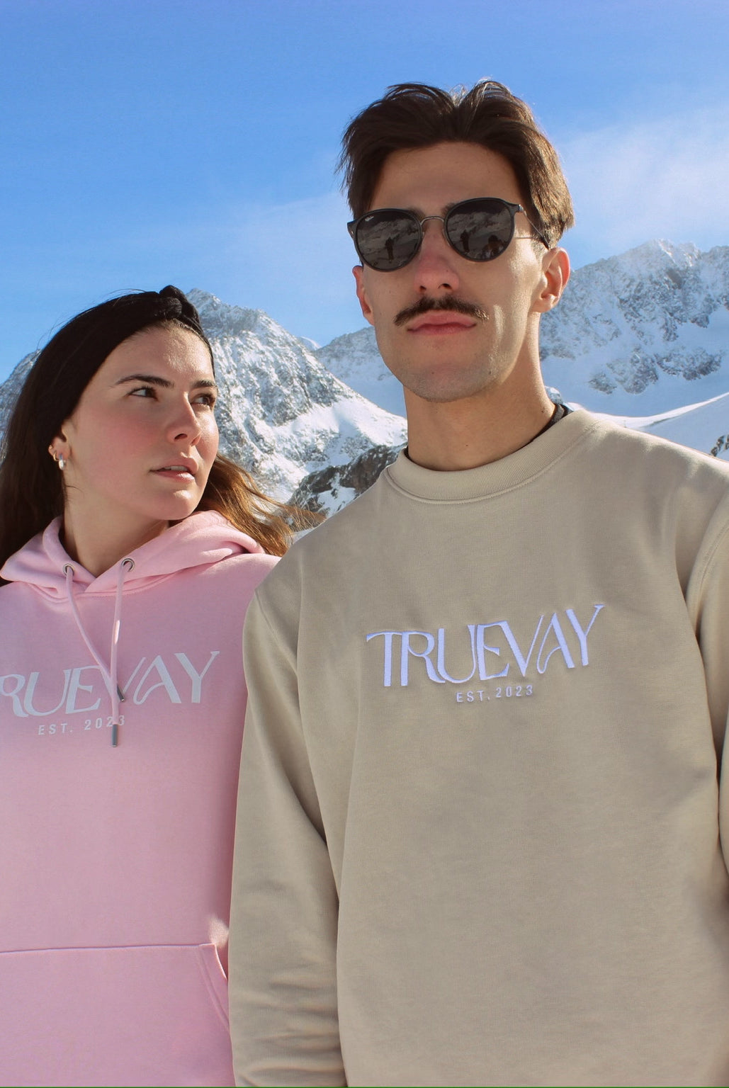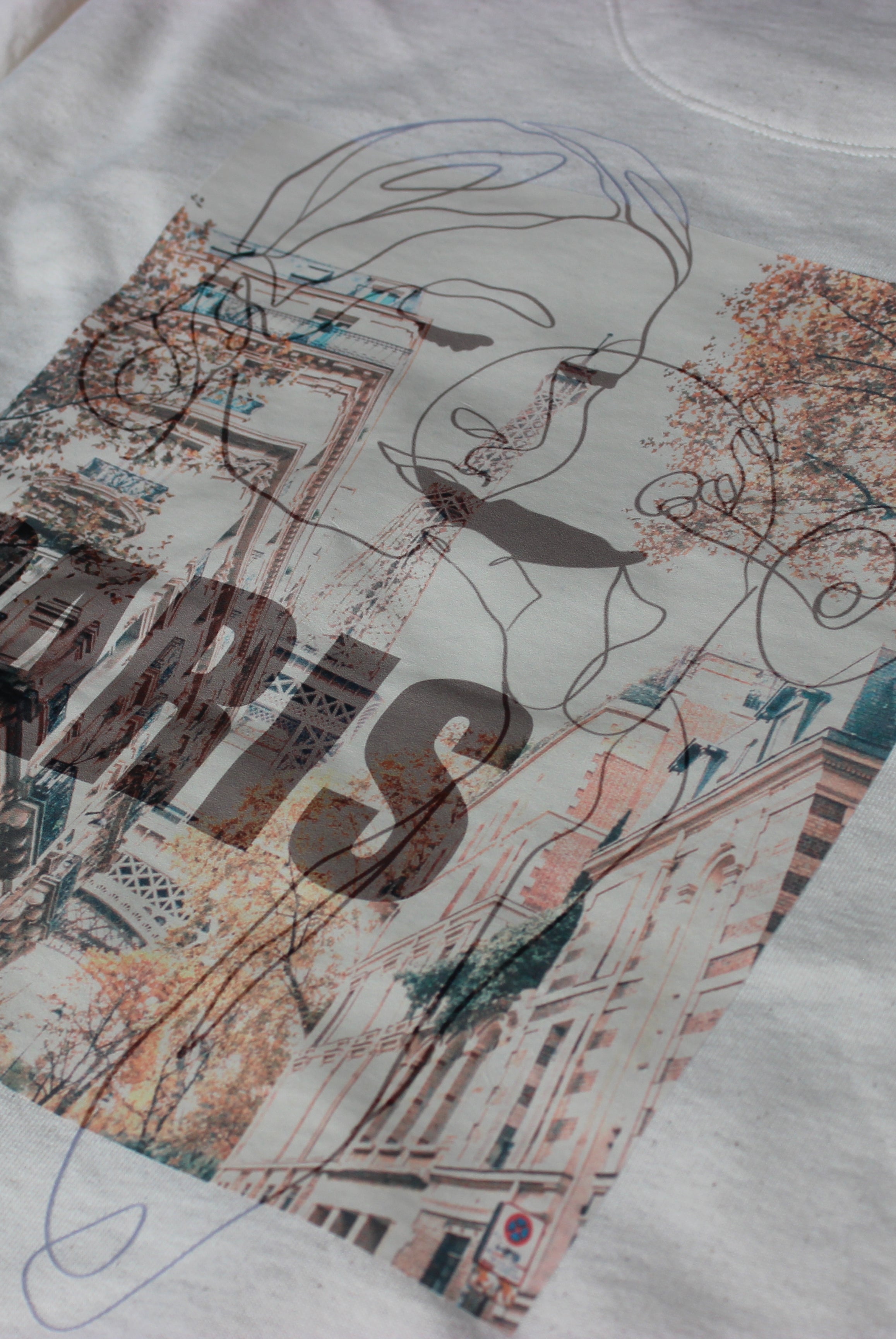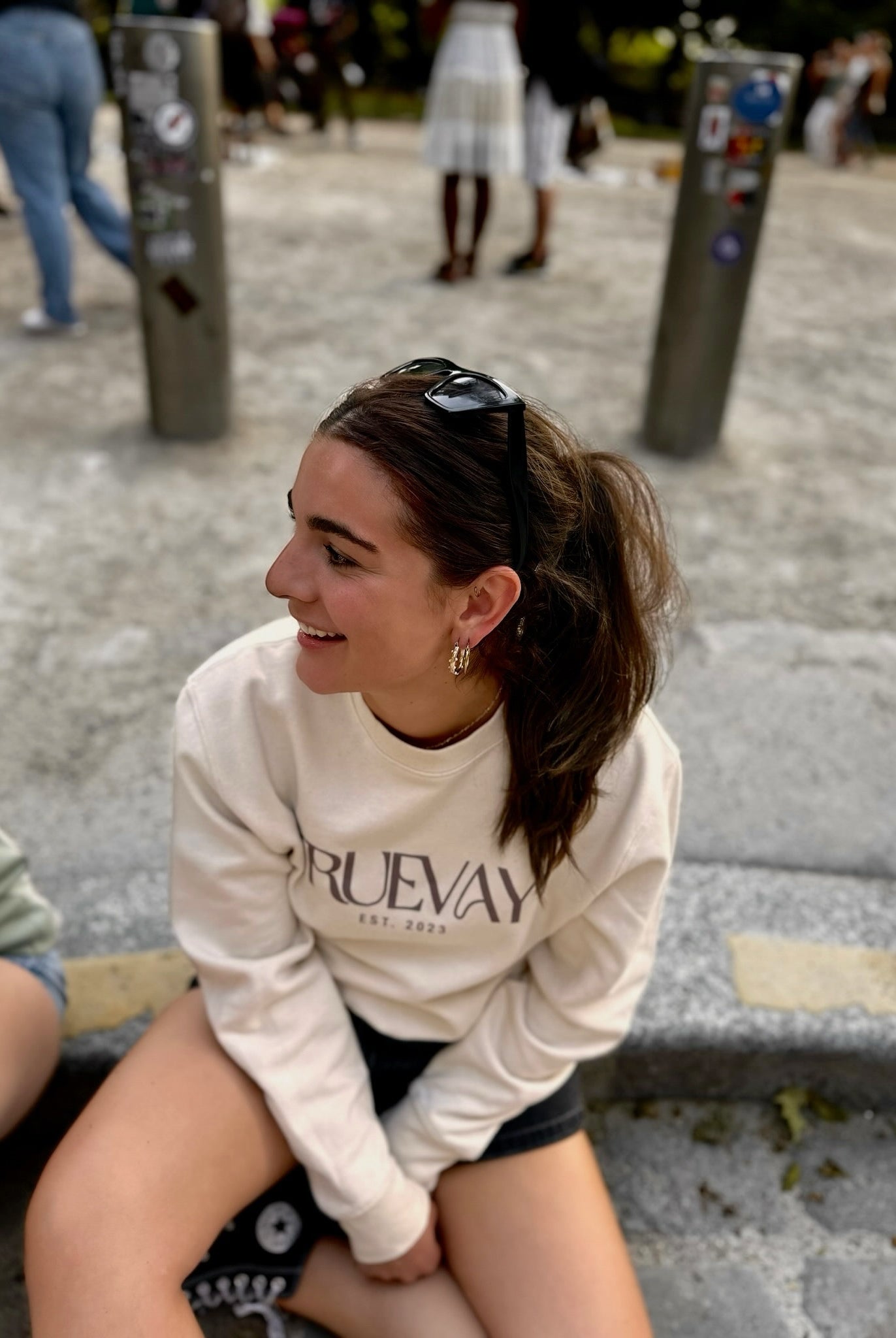 À La Tienne consists of our notorious printed logo, "Truevay", on the front of the crewneck, with its beautiful design of the Eiffel Tower and a woman enjoying her glass of wine, as well as the colourful "Paris" text on the back.