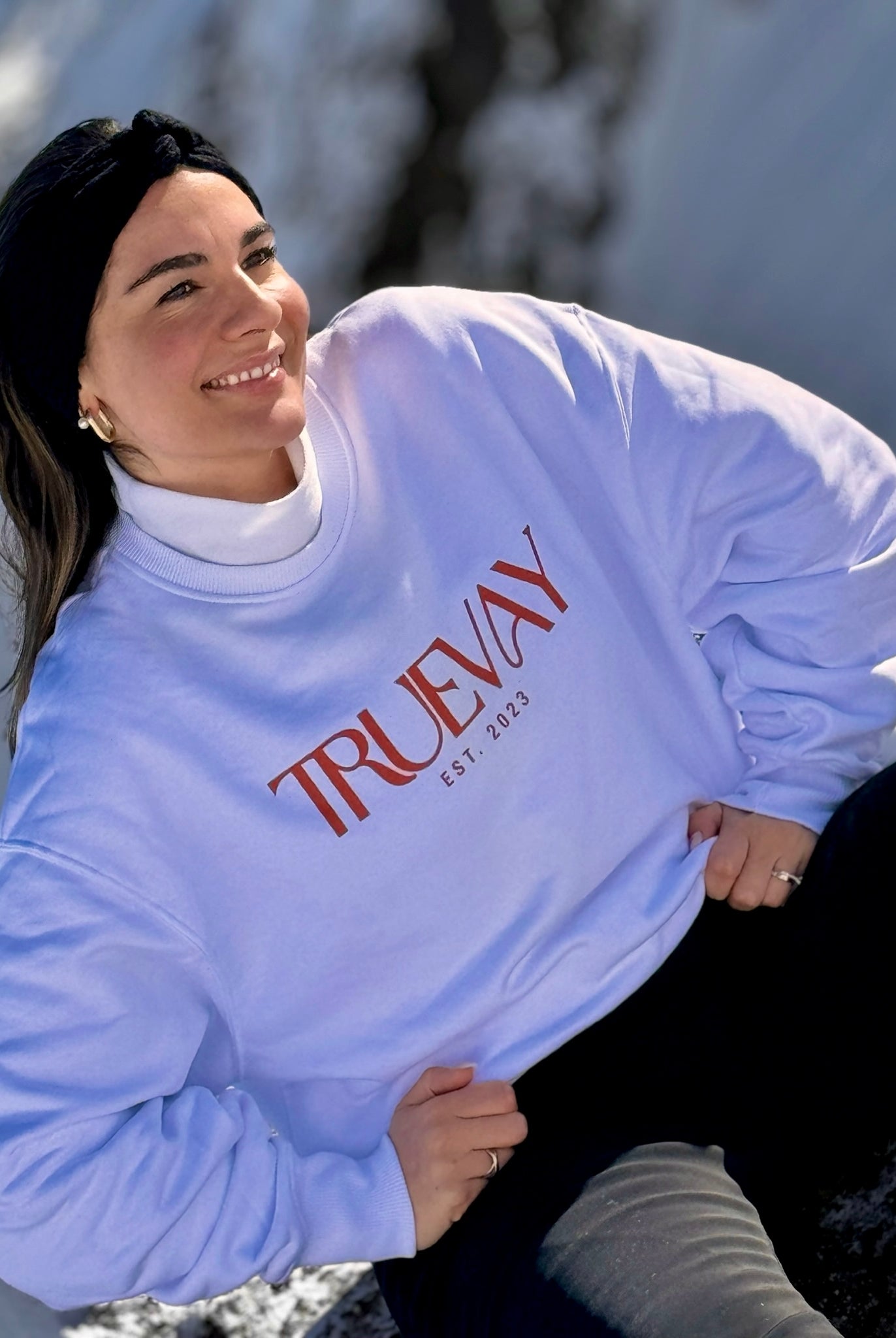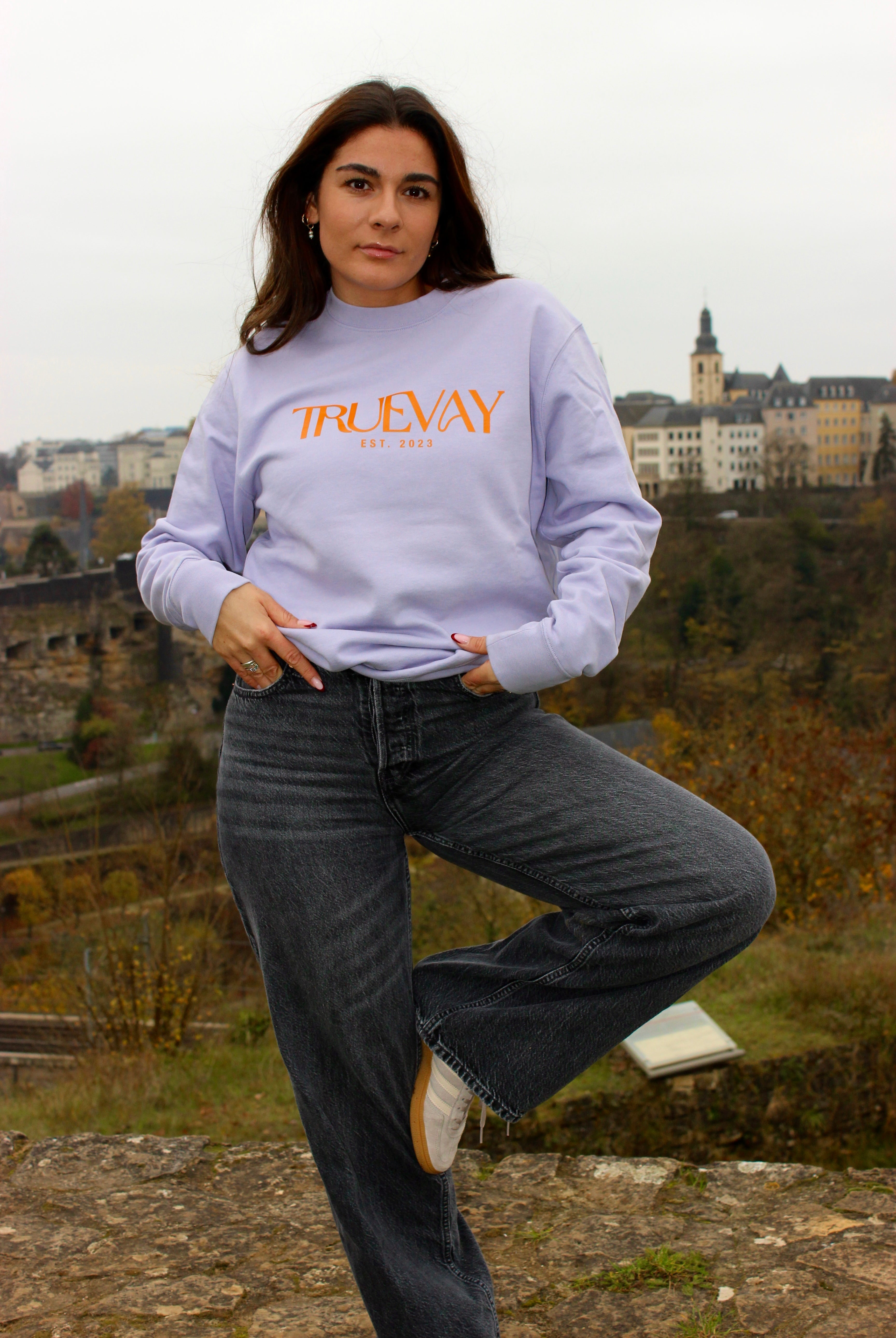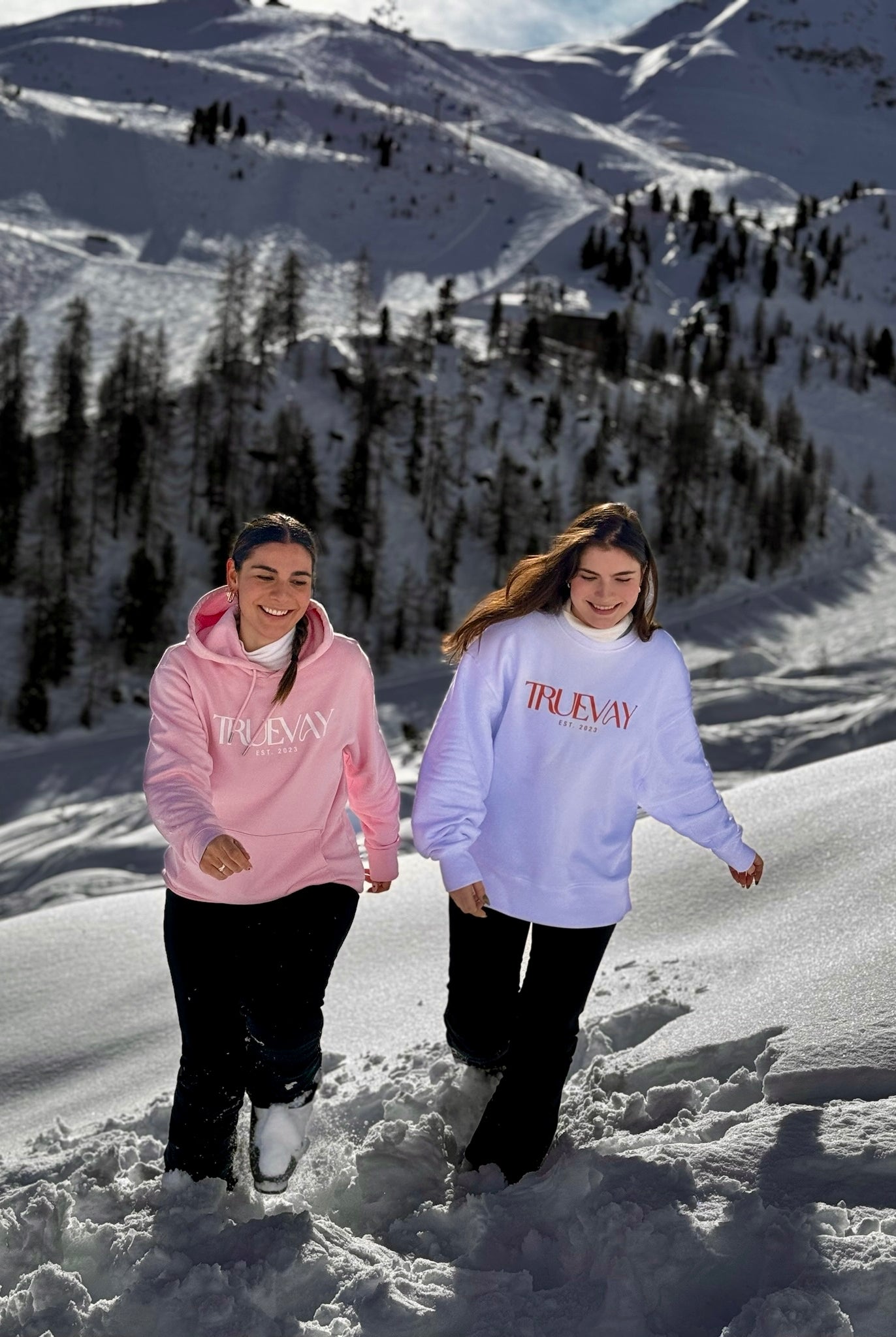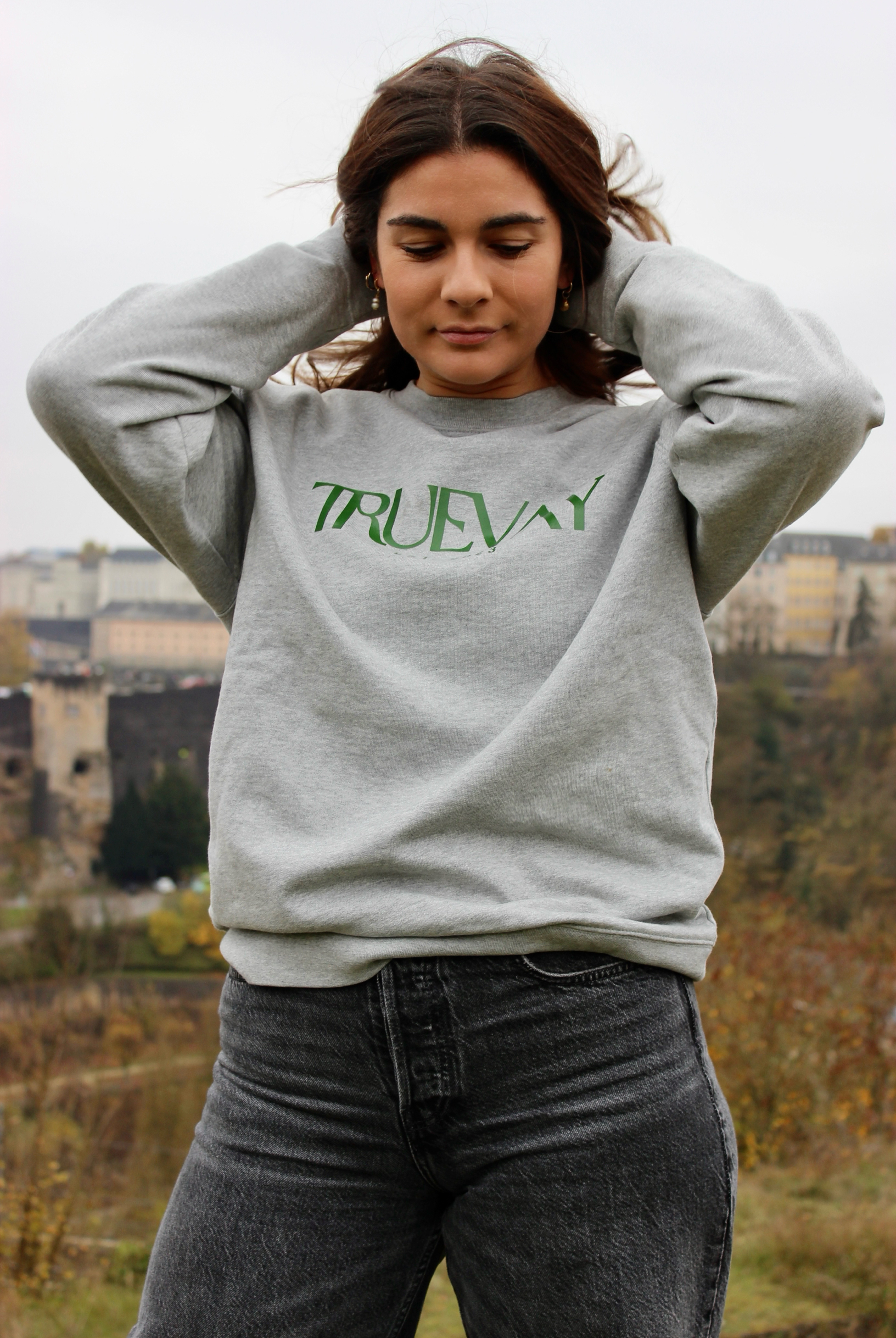 À La Tienne consists of our notorious printed logo, "Truevay", on the front of the crewneck, with its beautiful design of the Eiffel Tower and a woman enjoying her glass of wine, as well as the colourful "Paris" text on the back.
