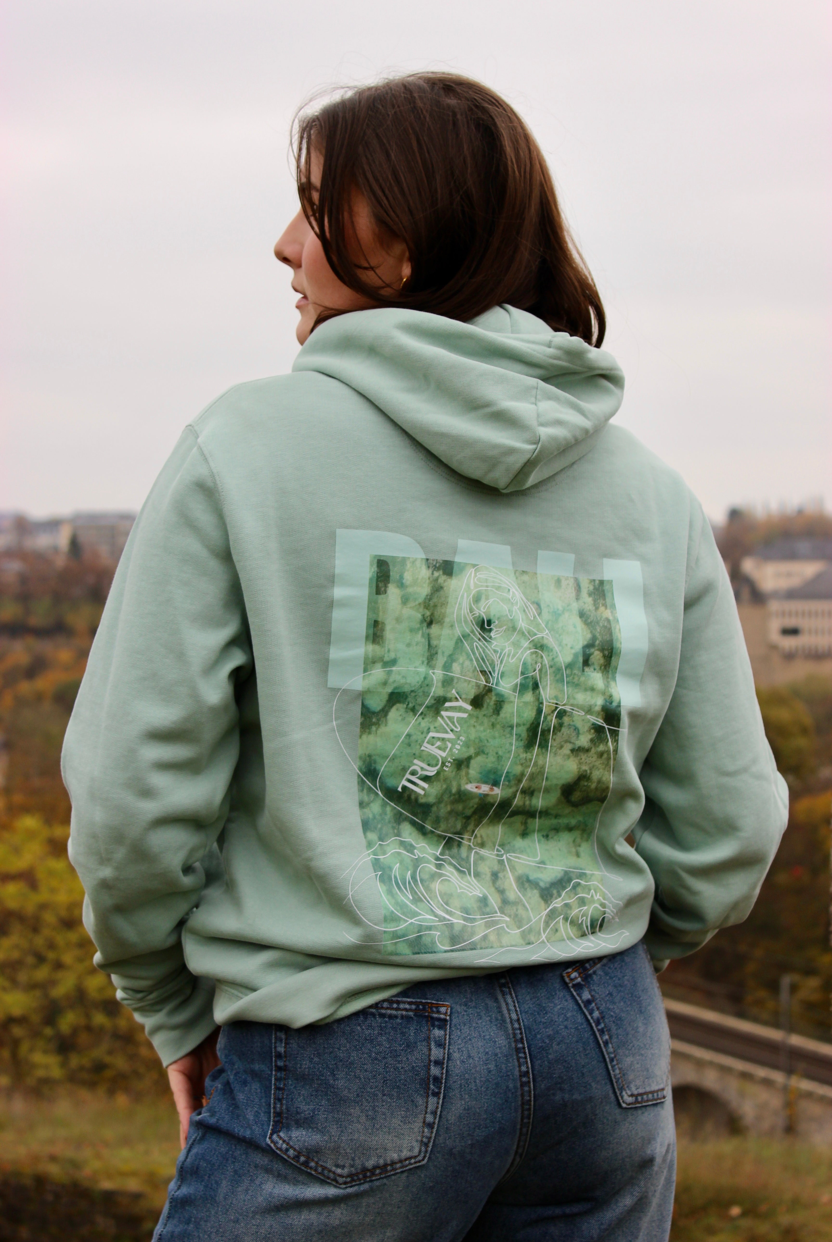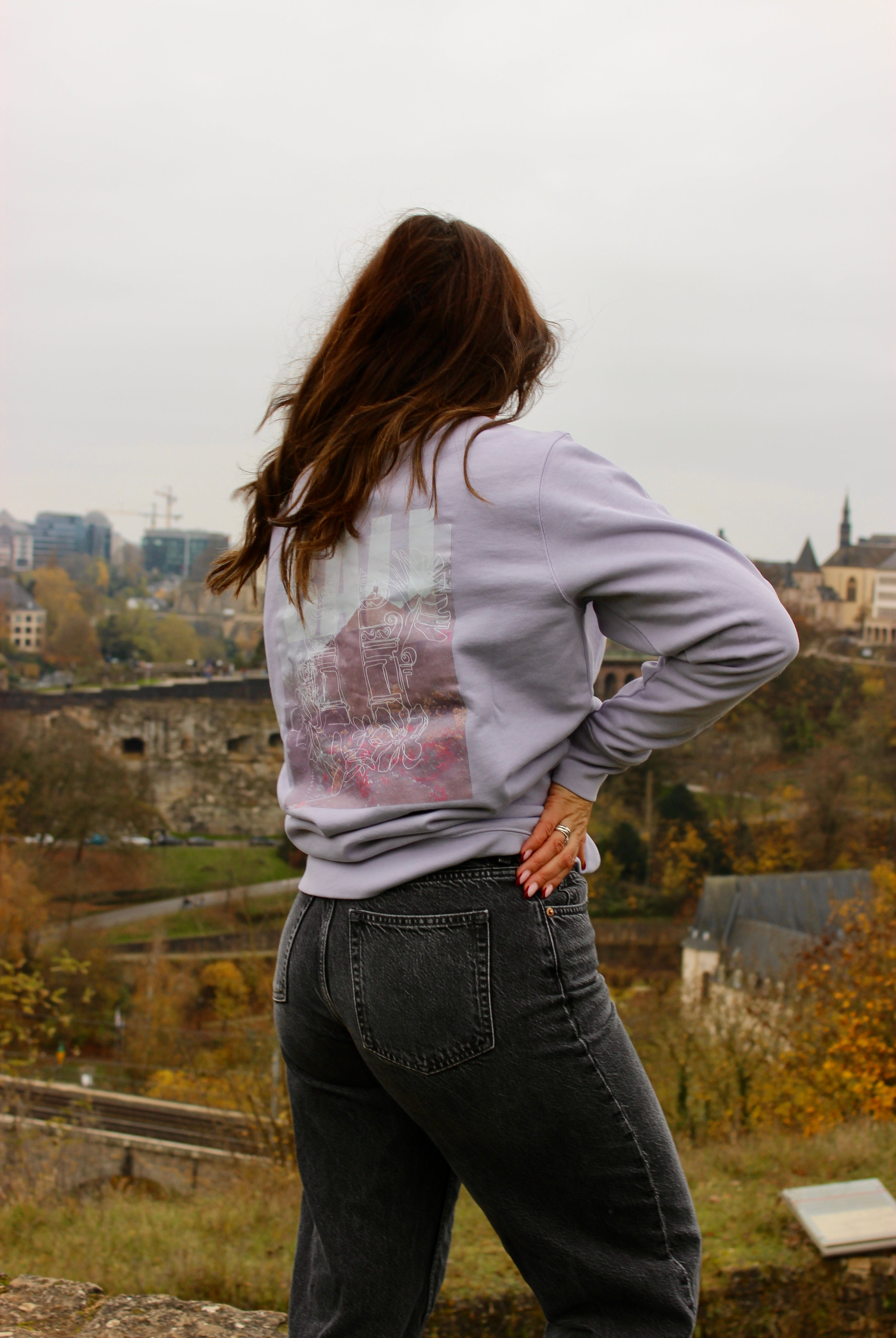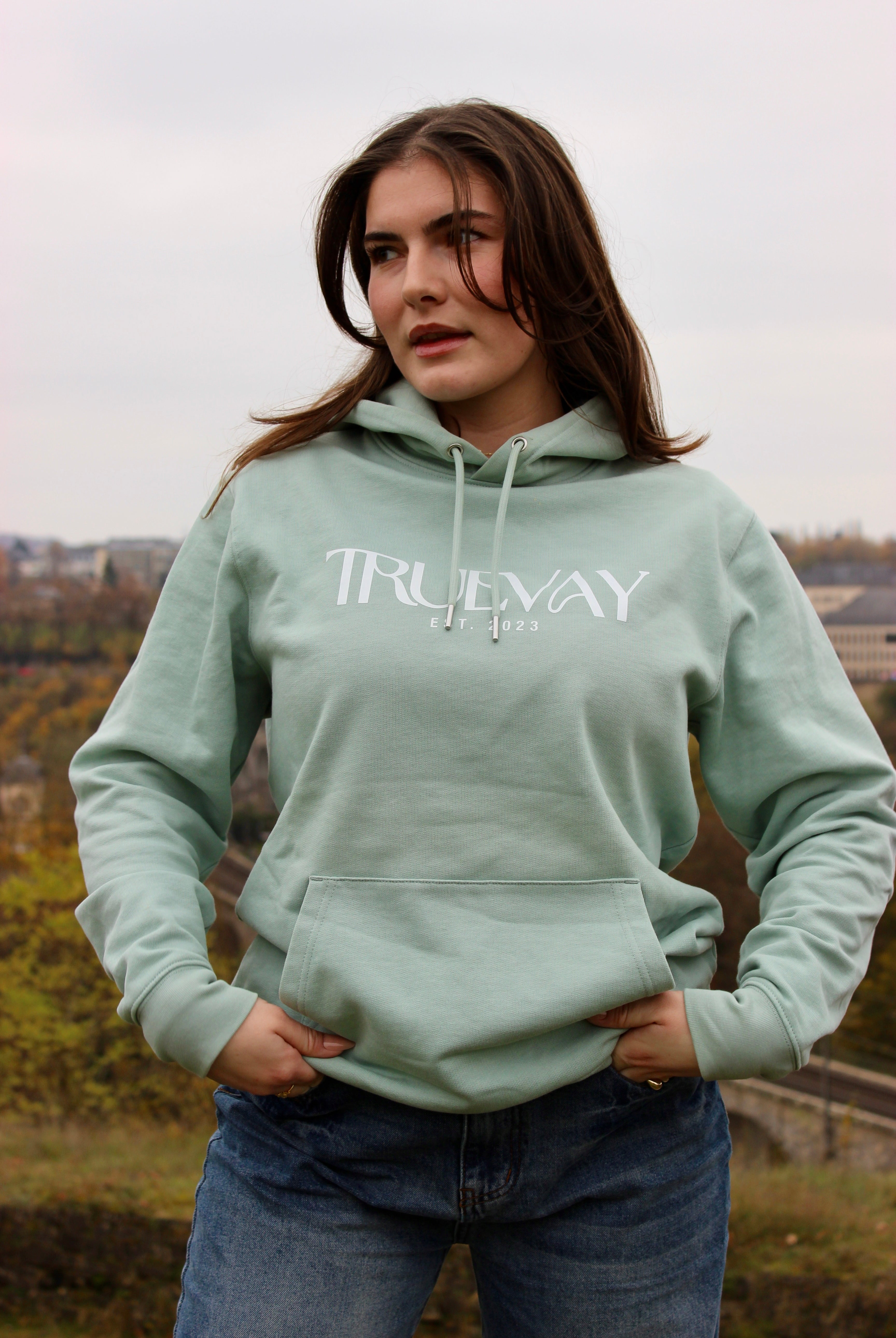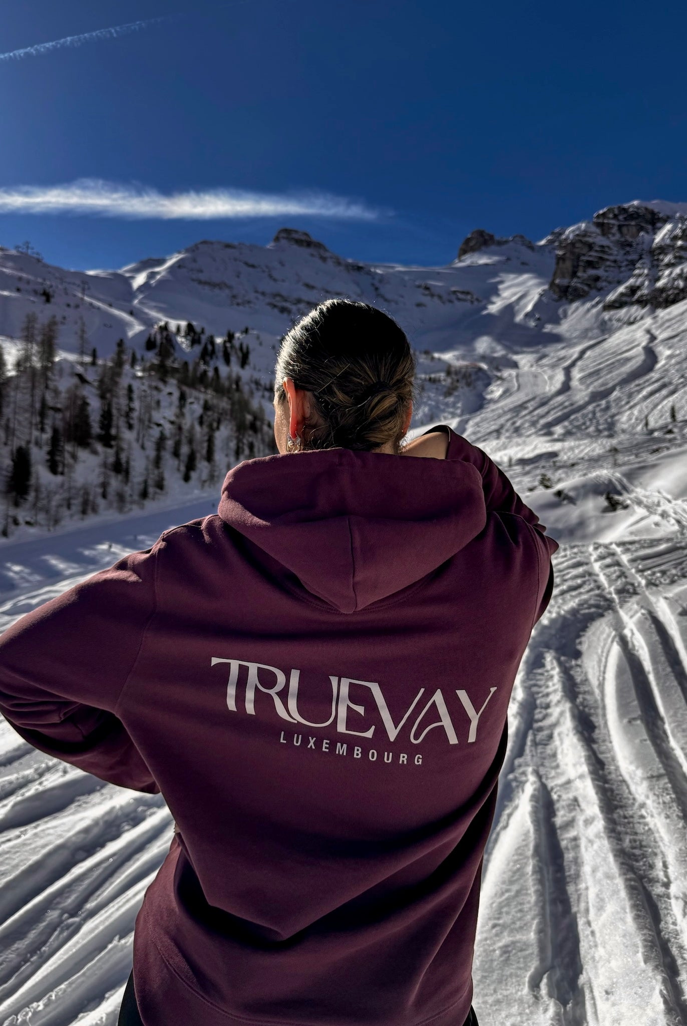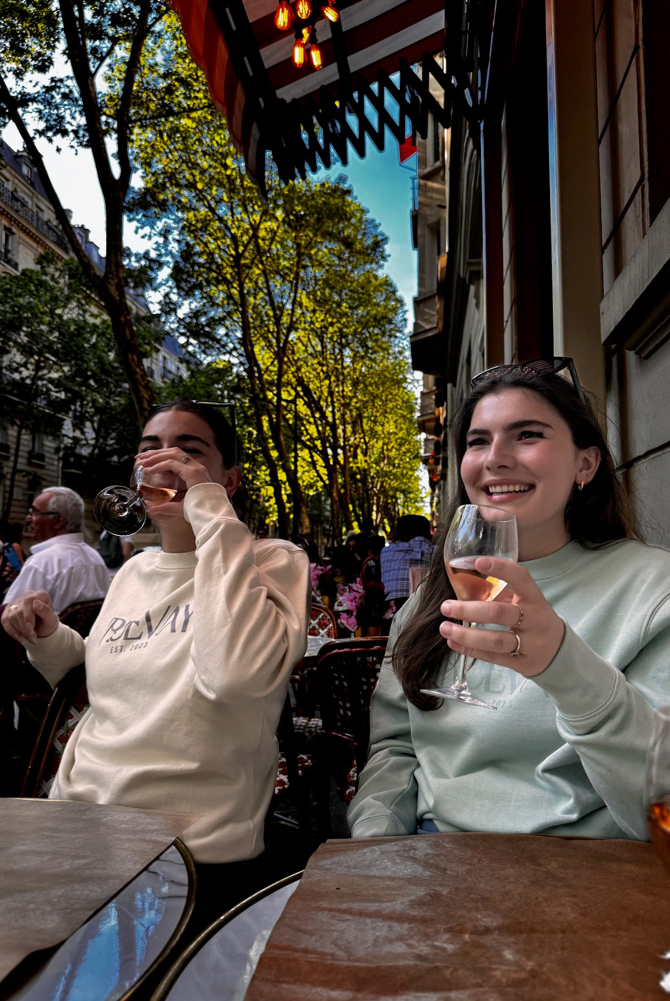 À La Tienne consists of our notorious printed logo, "Truevay", on the front of the crewneck, with its beautiful design of the Eiffel Tower and a woman enjoying her glass of wine, as well as the colourful "Paris" text on the back.