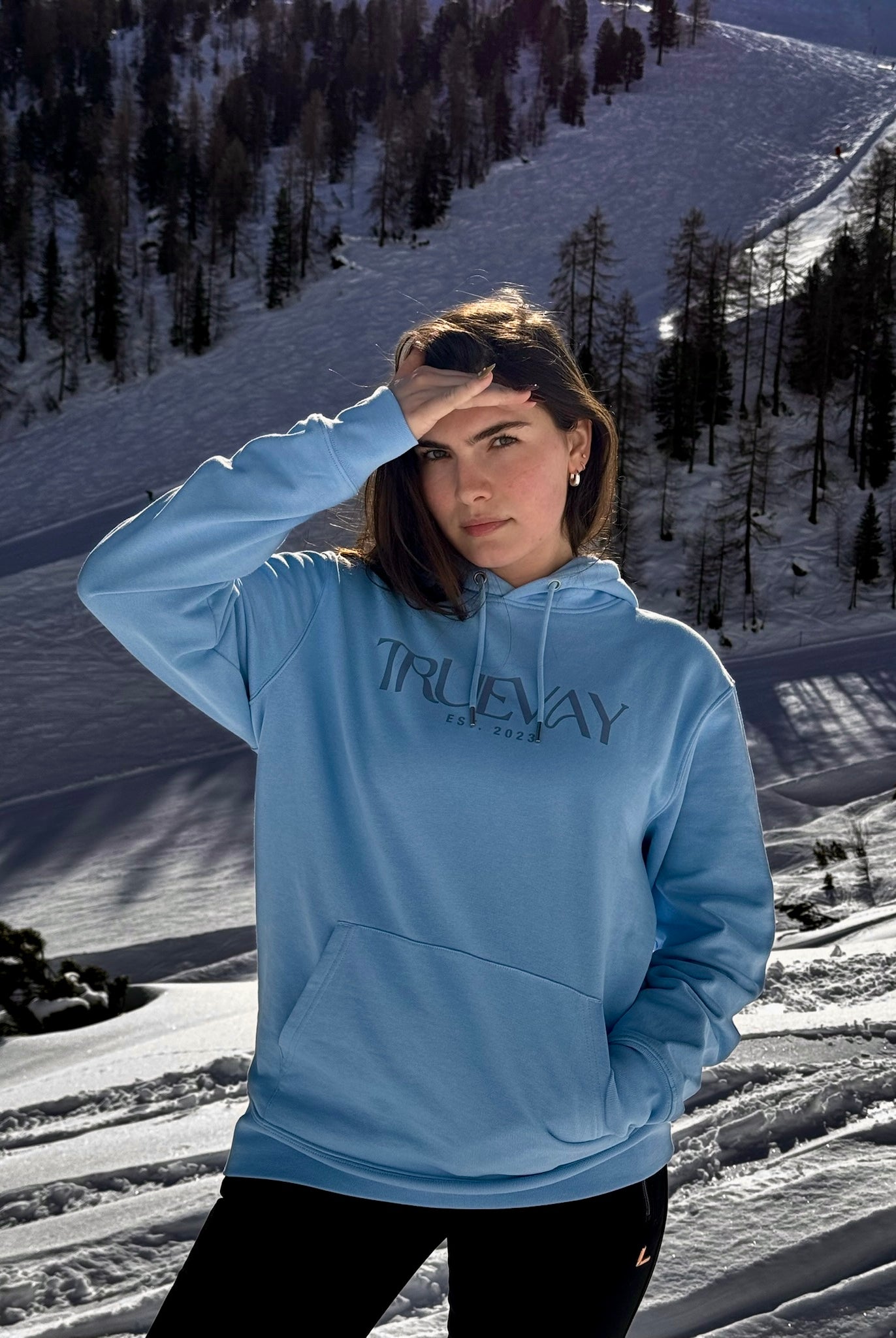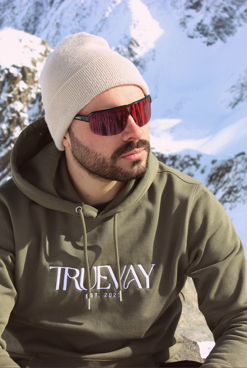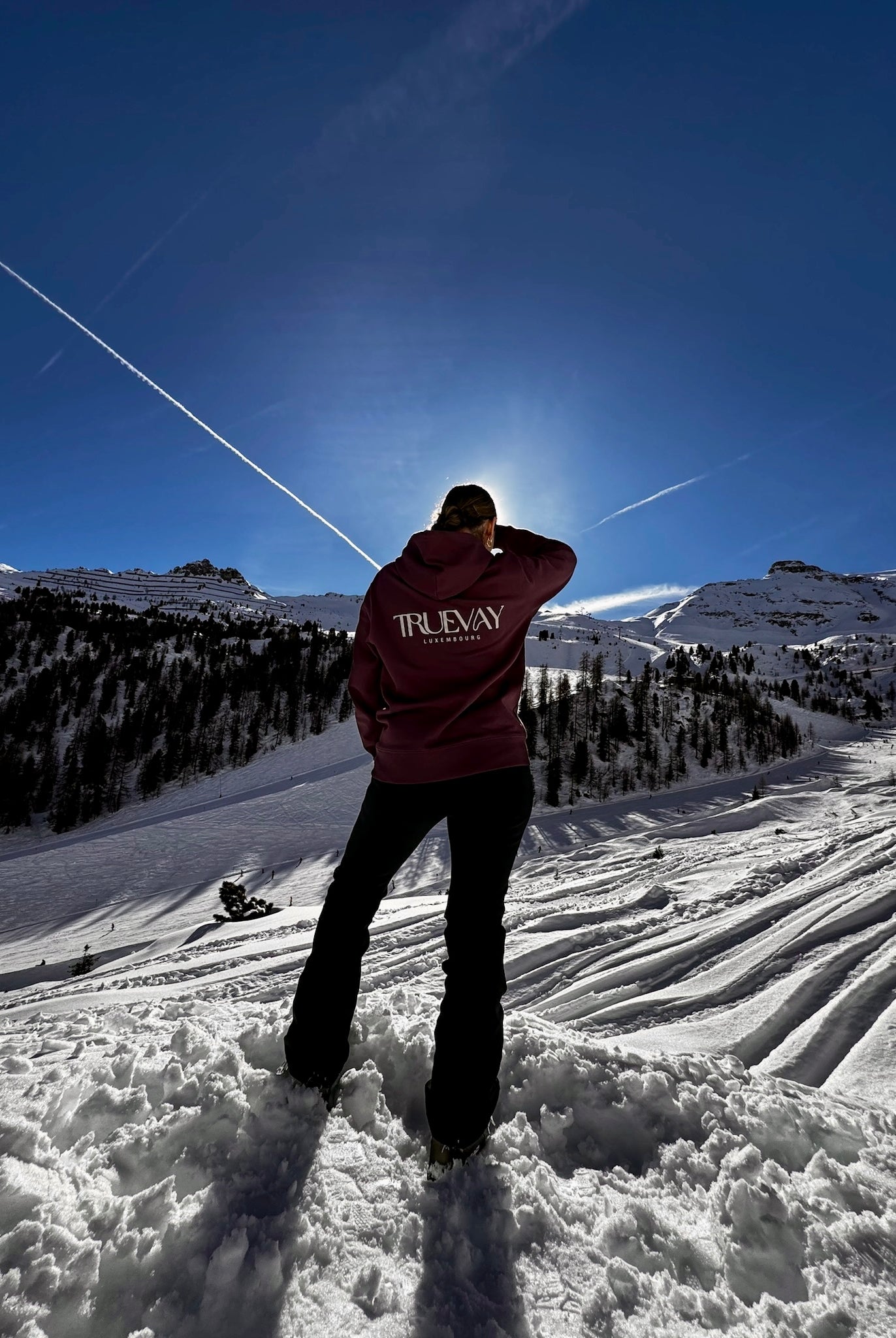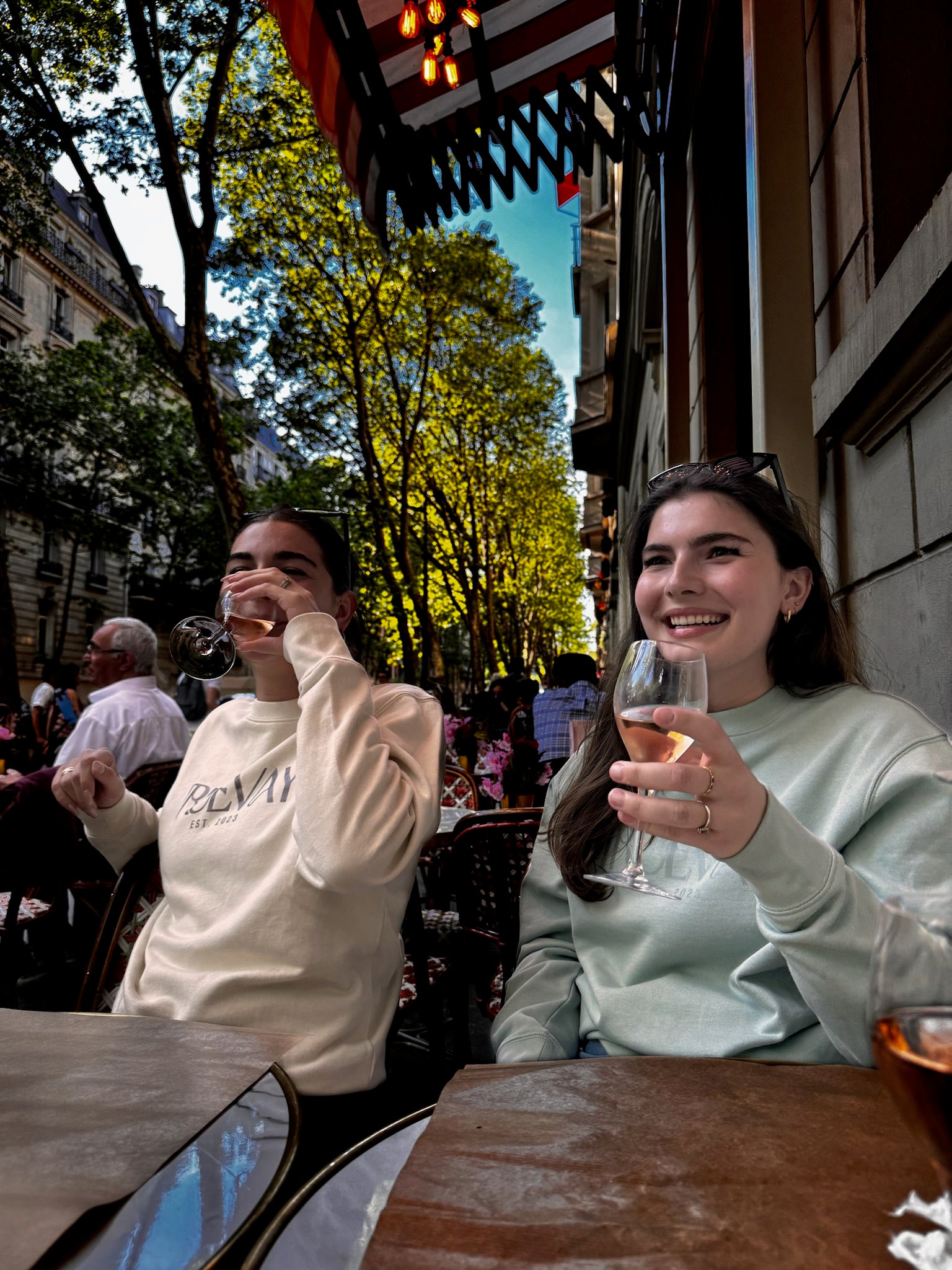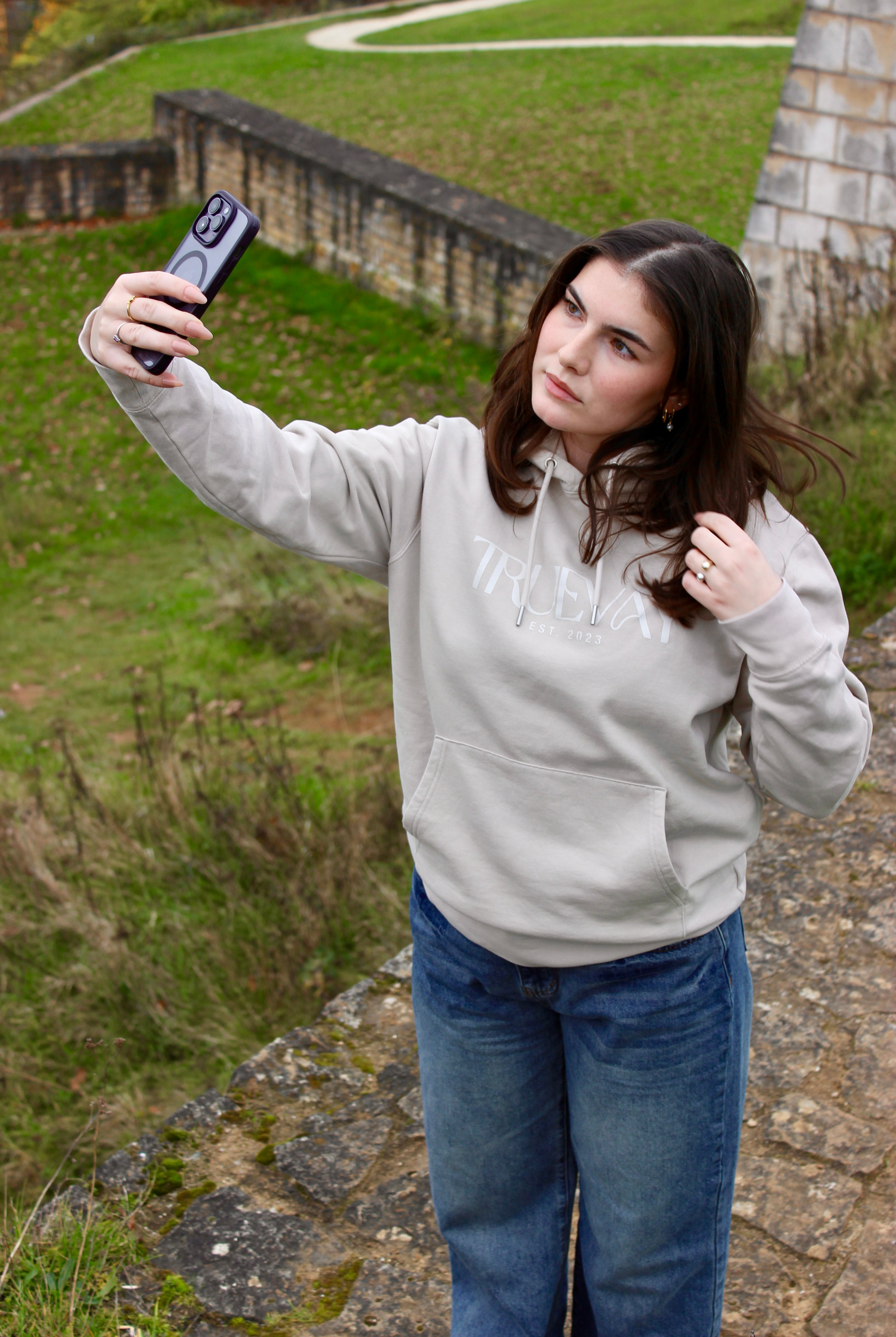 À La Tienne consists of our notorious printed logo, "Truevay", on the front of the crewneck, with its beautiful design of the Eiffel Tower and a woman enjoying her glass of wine, as well as the colourful "Paris" text on the back.