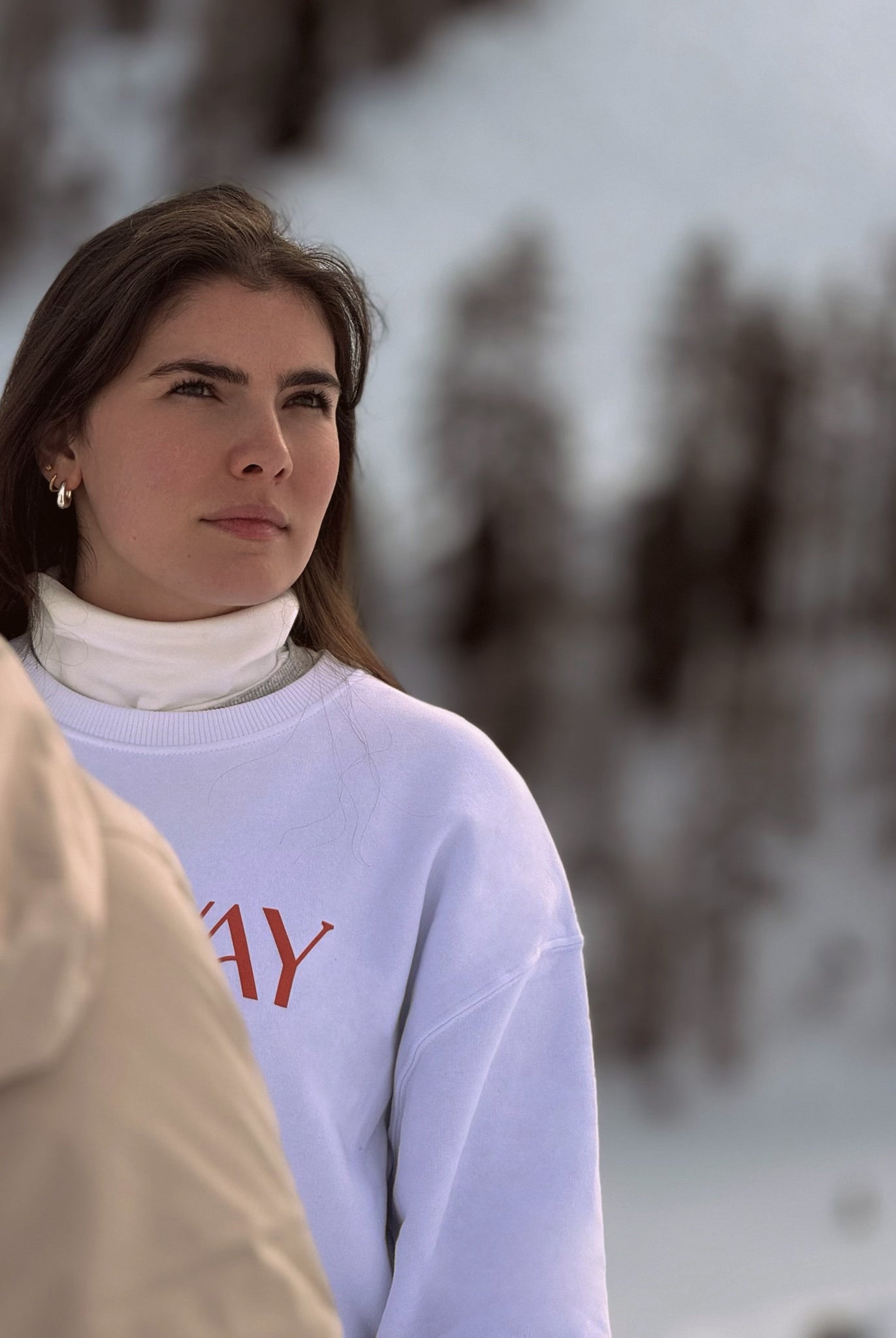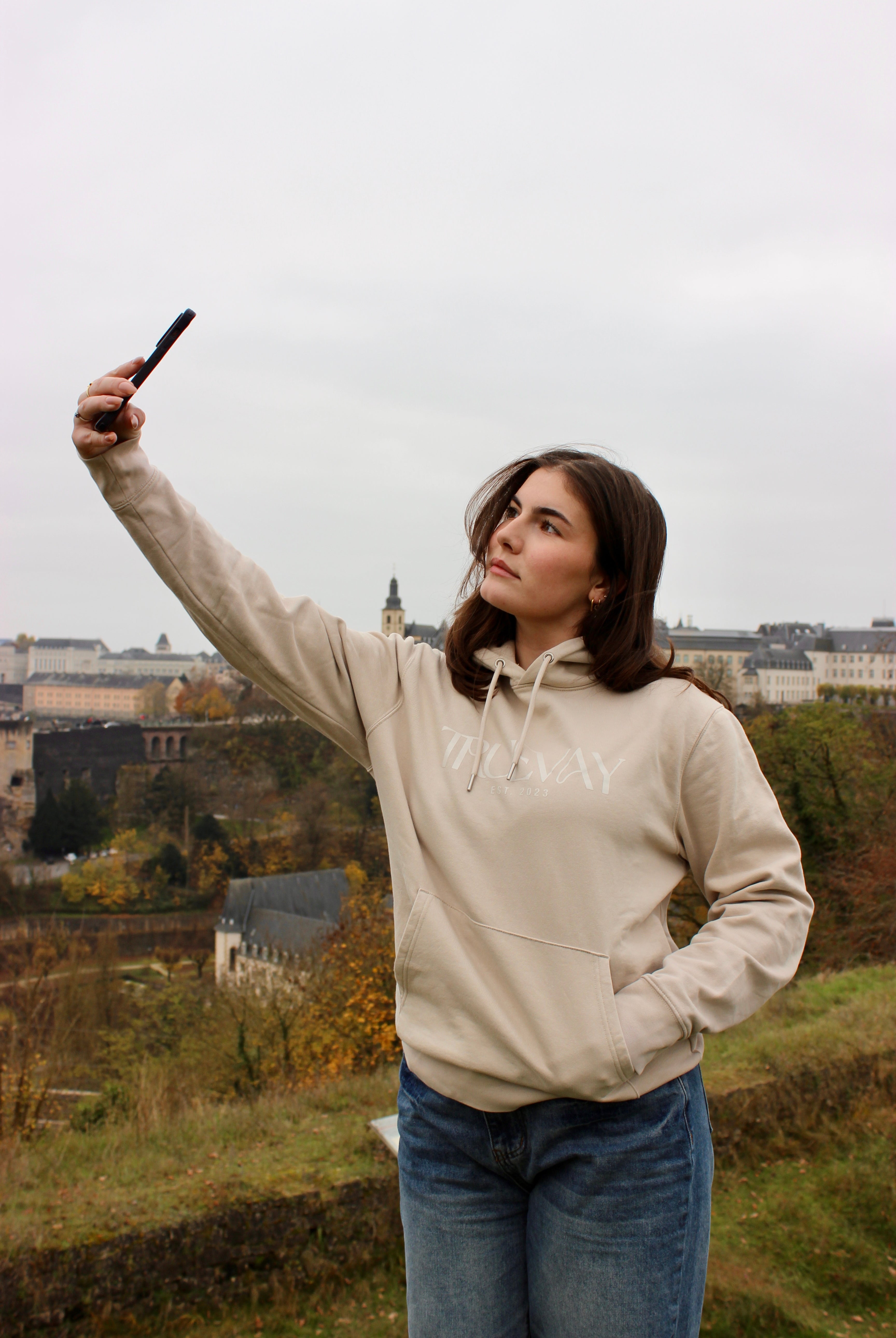 Our unisex creme-coloured À La Tienne Crewneck is ideal for those days when you just want to kick back and relax, or when you're going on an adventure.