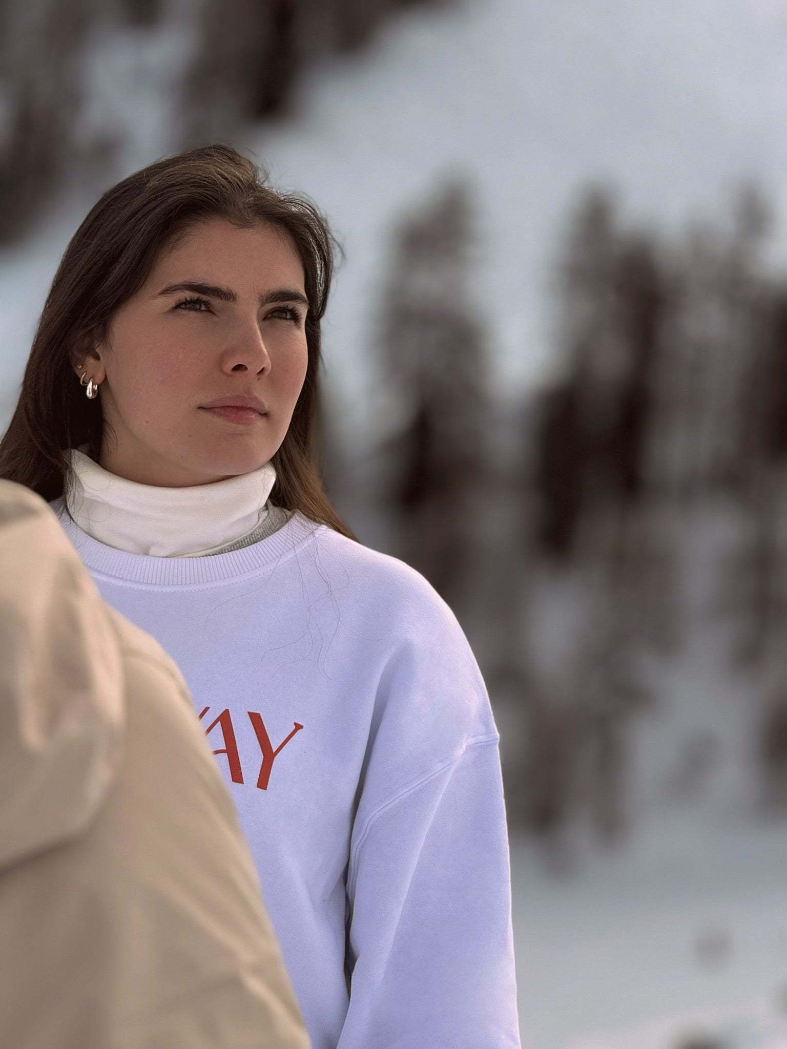 Our unisex white-coloured Après Ski Crewneck is ideal for those days when you just want to kick back and relax, or when you're going on an adventure.