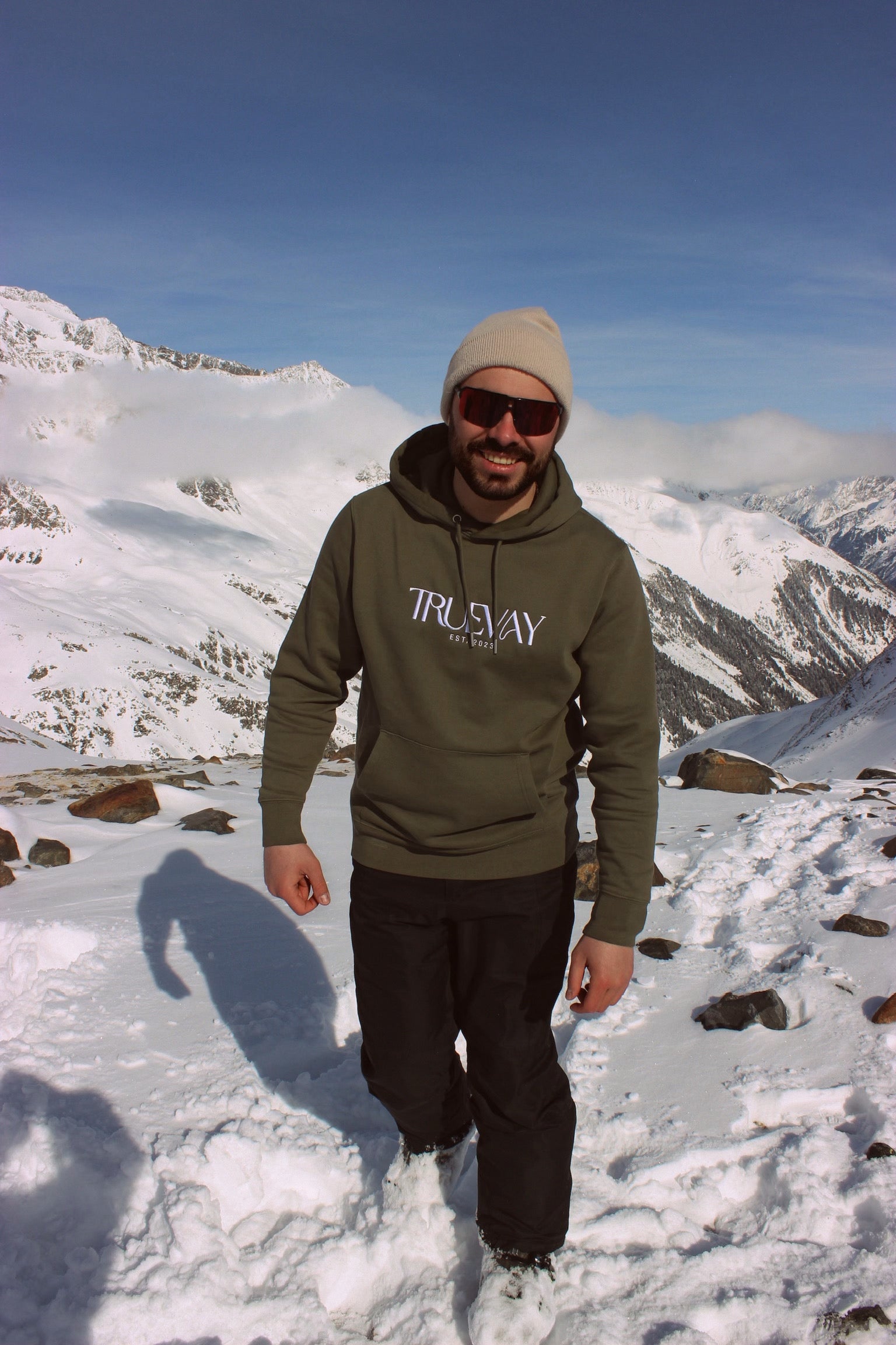 Earthy Soul consists of our notorious embroidered logo "Truevay" on the front of the hoodie.