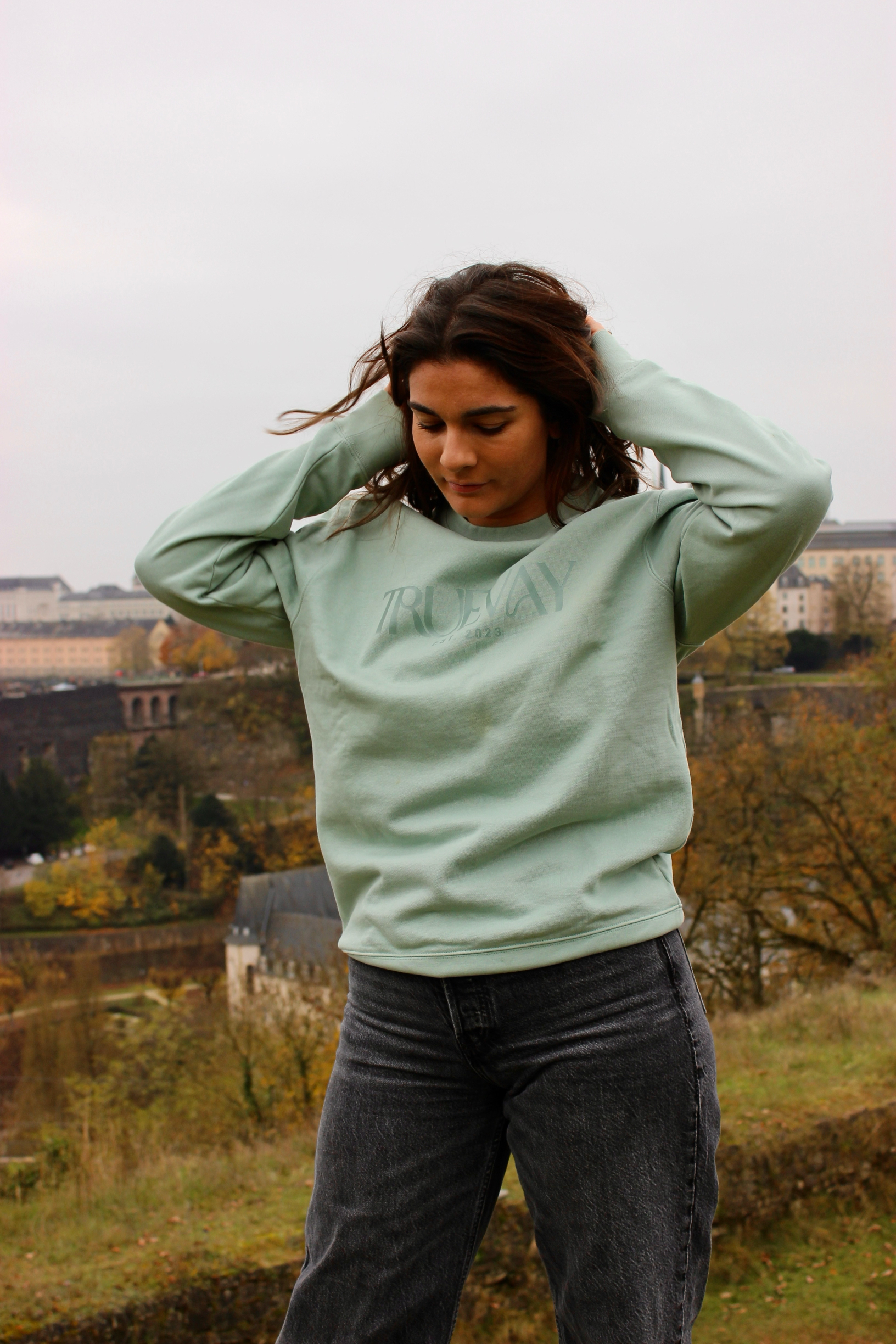 Our unisex sage-green Skyscraper Crewneck is ideal for those days when you just want to kick back and relax, or when you're going on an adventure.
