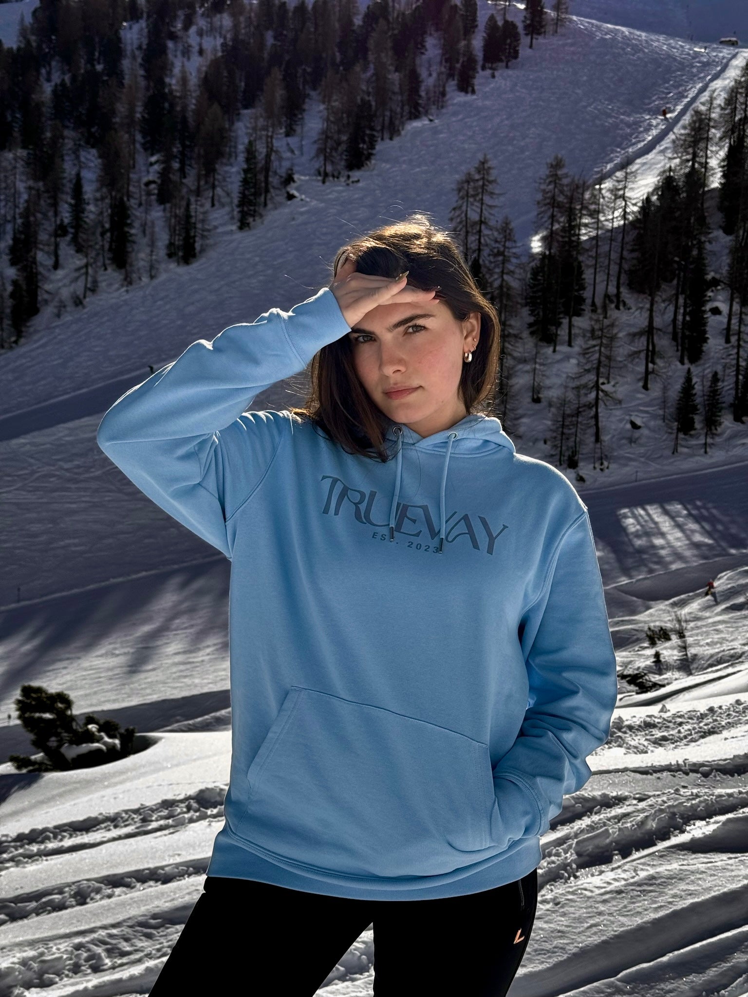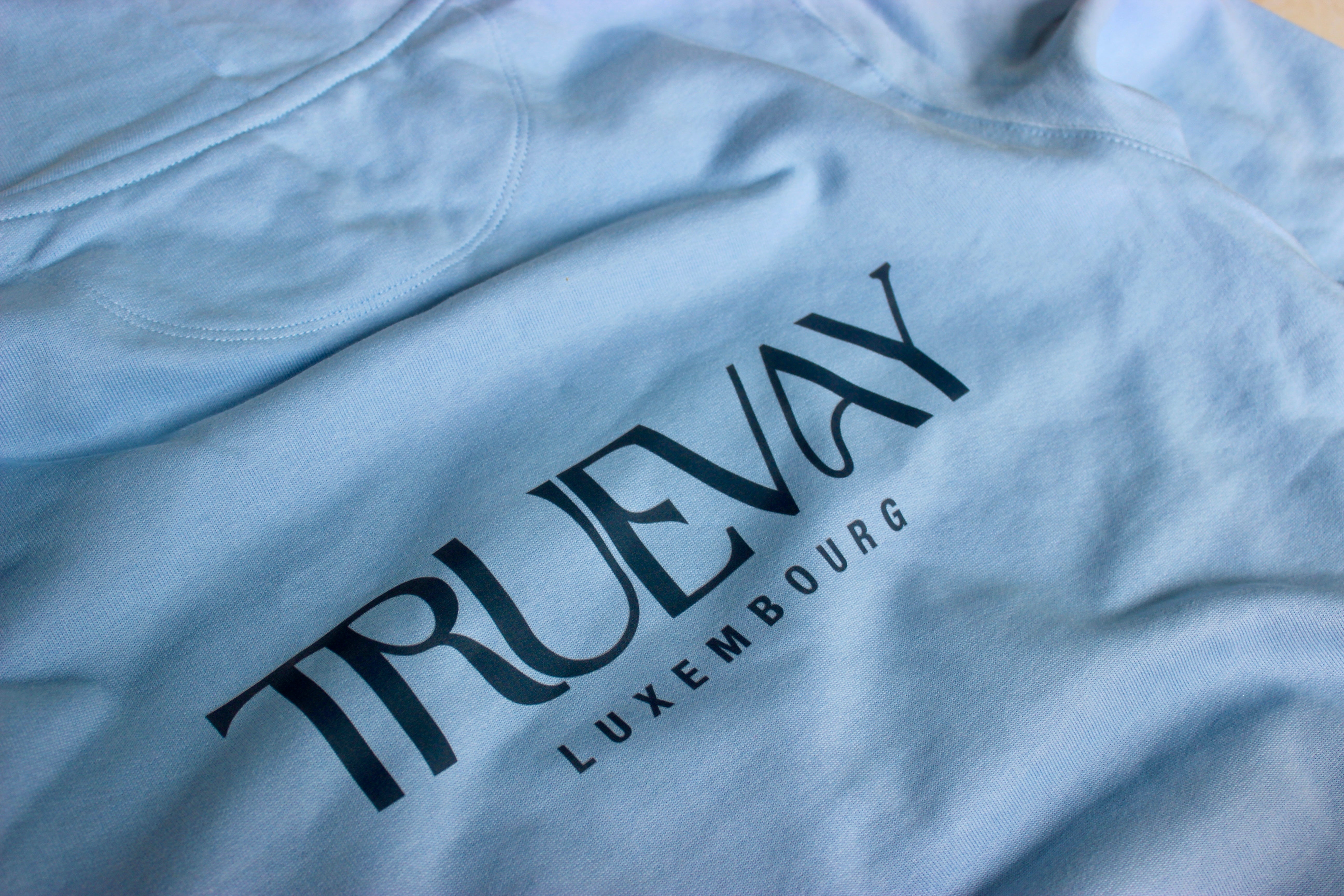 Clear Sky consists of our notorious embroidered logo "Truevay" on the front of the hoodie, as well as on the back with "Luxembourg" written underneath.